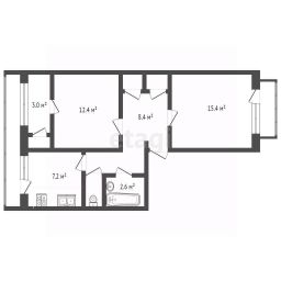 Квартира обладает удобной и практичной планировкой, что делает её отличным выбором для семьи с детьми. Просторные комнаты (15,4 м² и 12,4 м²) и кухня (7,2 м²) обеспечат вам комфорт и уют. Высота потолков 2,57 м создает ощущение простора и света. Раздельный санузел и центральное водоснабжение добавляют удобства в повседневную жизнь.