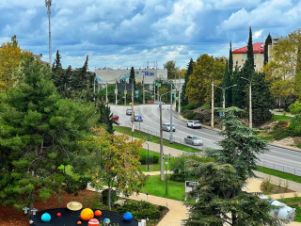 Прямо под окнами расположен новый, прекрасно оборудованный Гагаринский сквер с инновационной детской площадкой, посвященный космосу и Юрию Гагарину.