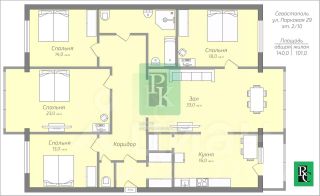 Пятикомнатная квартира 140 м2 с кухней 16м2 на 2/10 этаже дома, с просторной кухней 16 м2. Расположена в г. Севастополь, Гагаринский район, ул. Парковая д. 29.