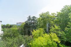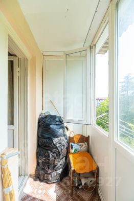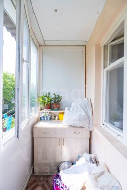 Просторный остекленный балкон место для отдыха с видом на зелень