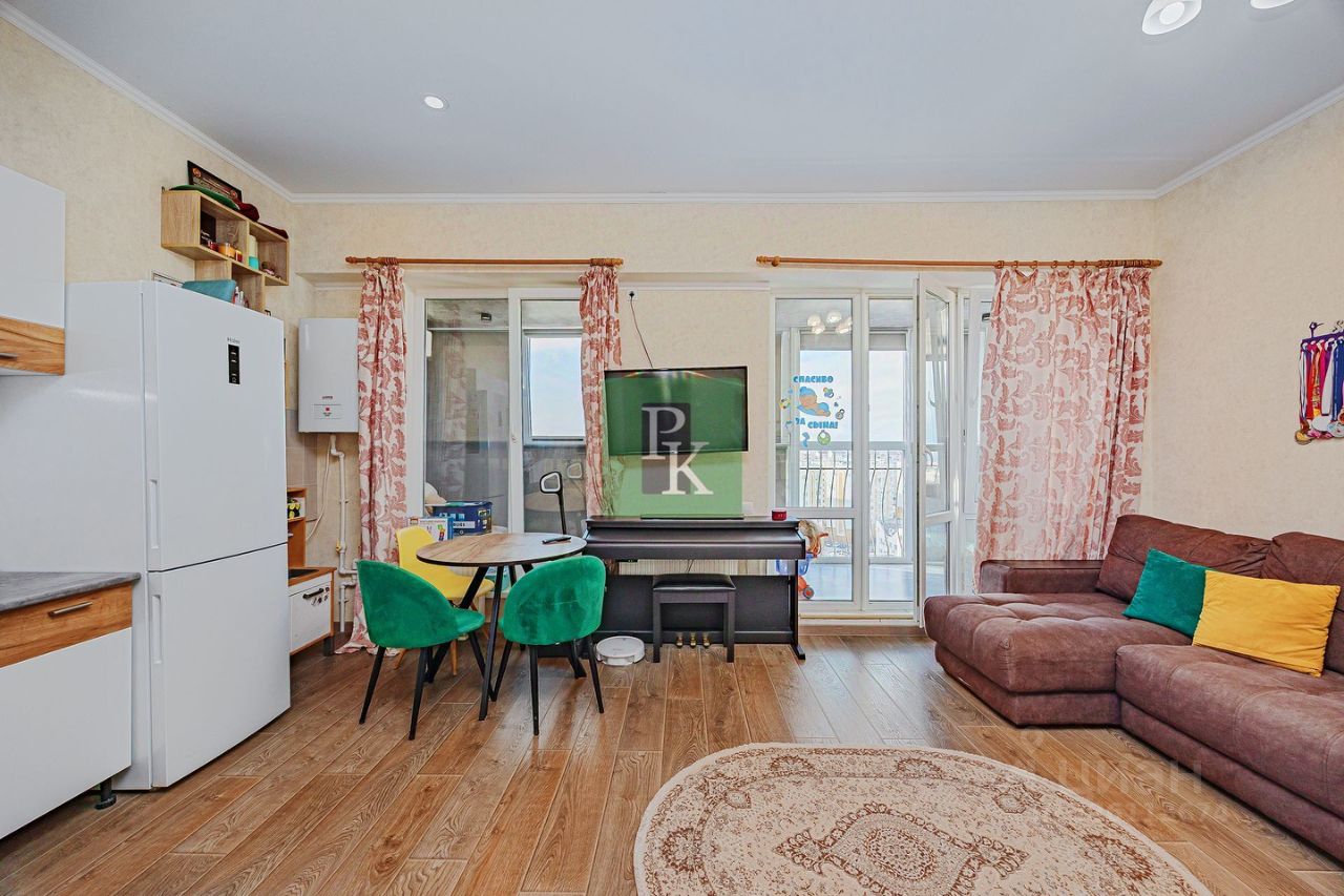 Видовая однокомнатная квартира на 11/11 этаже площадью 31,8 м2. Расположена в г. Севастополь, Гагаринский район, ул. Колобова, д. 21 Г.