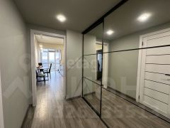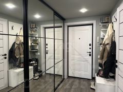 Продуманное хранение: В коридоре установлен зеркальный шкаф-купе глубиной 60 см на всю длину стены — эстетичное решение, которое вместит всё необходимое и визуально расширит пространство.
