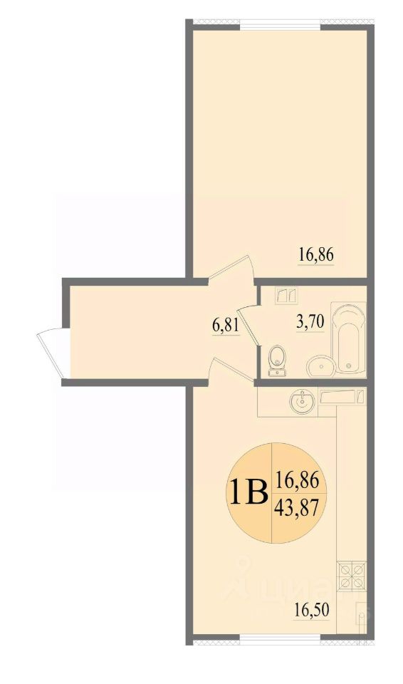 Общая площадь43,87 м²