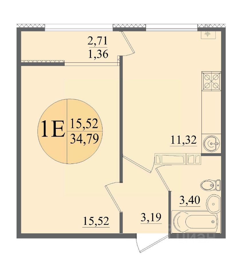 Общая площадь34,79 м²