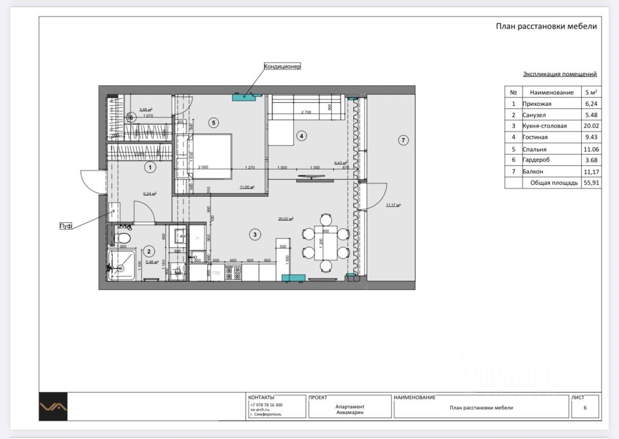 Планировка: 1 отдельная спальня с двуспальной кроватью, гостиная с раскладным диваном, полноценная кухня со всей техникой, совмещенный санузел, гардеробная.