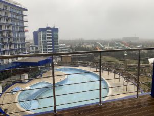 Собственная инфраструктура: Охраняемая территория, частный пляж с лежаками, открытый бассейн, аквапарк, динопарк, теннисный корт.