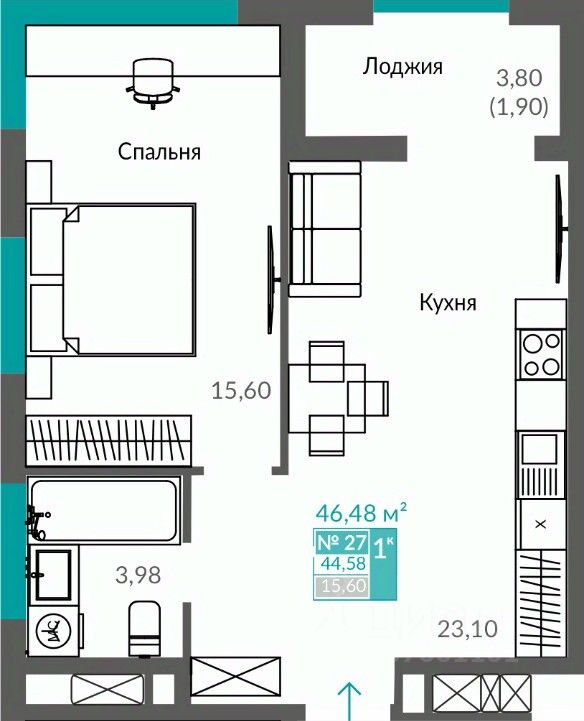 Продаётся 1-комнатная квартира в строящемся доме (Секция 1), срок сдачи: II-кв. 2027, общей площадью 44.58 кв.м., на 4 этаже. Новый жилой квартал "Видный" от застройщика "Монолит" расположен по адресу Севастополь, Балаклавское шоссе