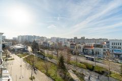 Эта квартира не только просторная и тёплая, но и обладает потрясающим видом: из зала 18,6 м кв. открывается панорама на проспект, а спальня 12,1 м кв.выходит во двор, что обеспечивает тишину и спокойствие.