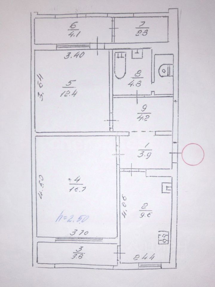 Высота потолка: 2.5 м.