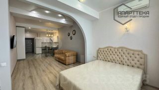 Характеристика квартиры: студия с качественным дизайнерским ремонтом (состояние - как новая, почти не проживали), при ремонте сделана дополнительная шумоизоляция от соседей, выполнено зонирование для кухни/гостинной/спальни, сан узел совмещенный (электрический теплый пол), отопление - в доме крышная котельная (на отопительный сезон). Все фотографии соответствуют.