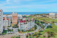Вид на море, ухоженная придомовая территория, детская площадка, спортивная площадка, зона парковки.