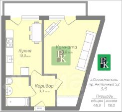 -Общая площадь: 45,3 м2