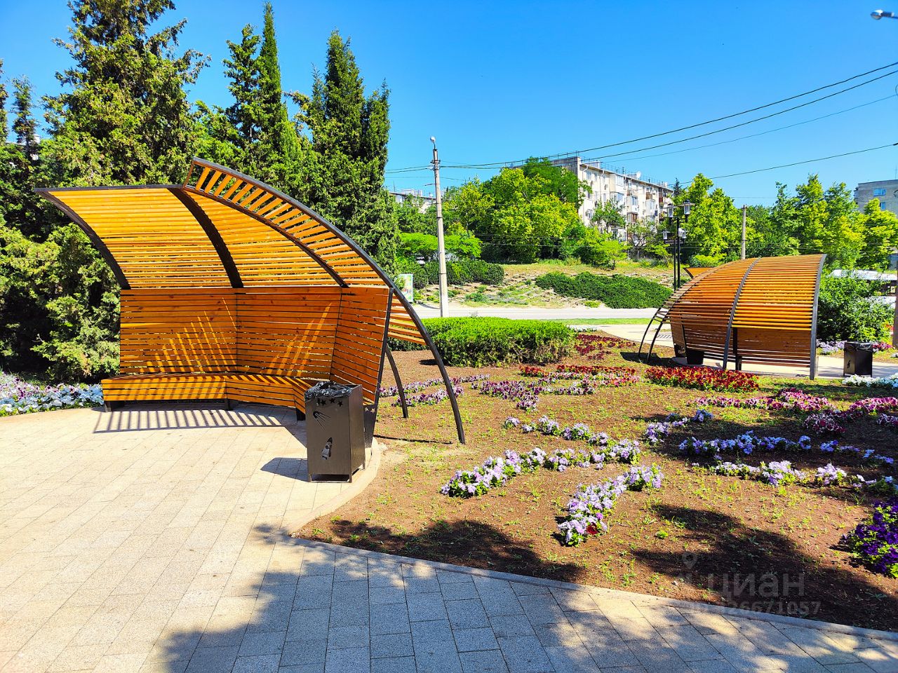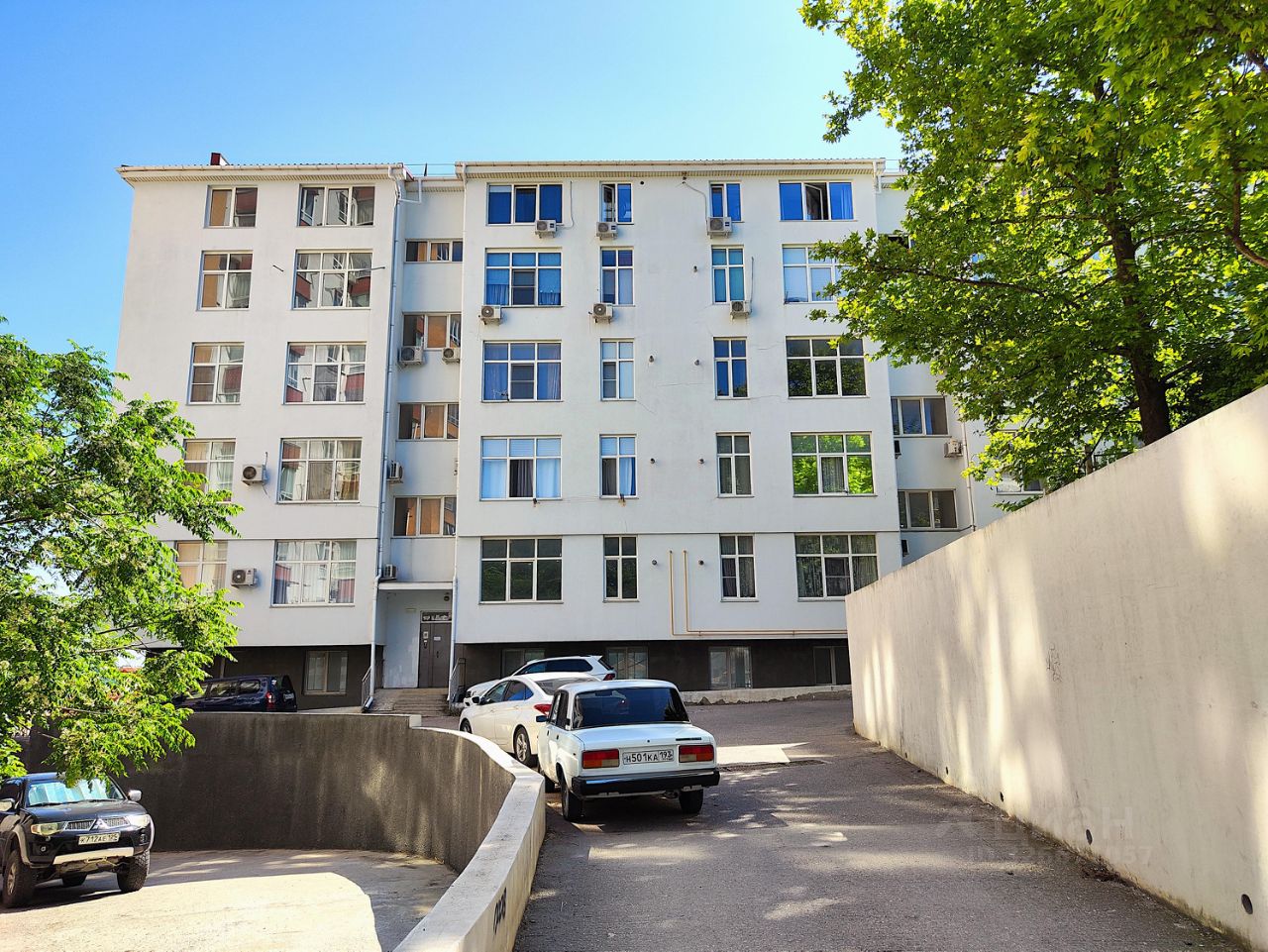 Ухоженная придомовая территория с зелёными насаждениями,