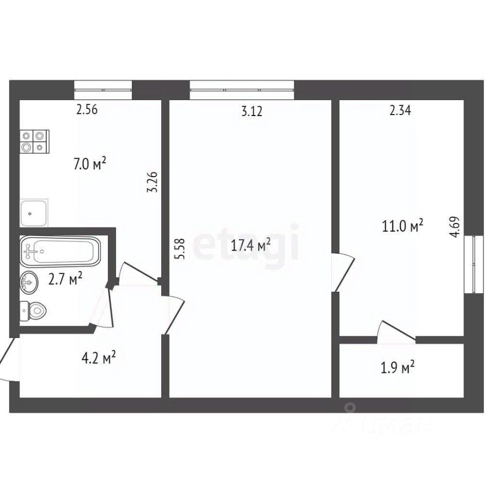 Общая площадь 44.1 м²