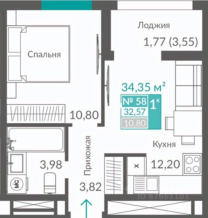 32,57 м²