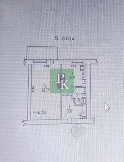 Однокомнатная квартира 30,1 м2, на 5/5 этаже дома . Квартира рядом с морем.
