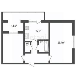 Две раздельные комнаты: 11 кв м и 23,3 кв м.