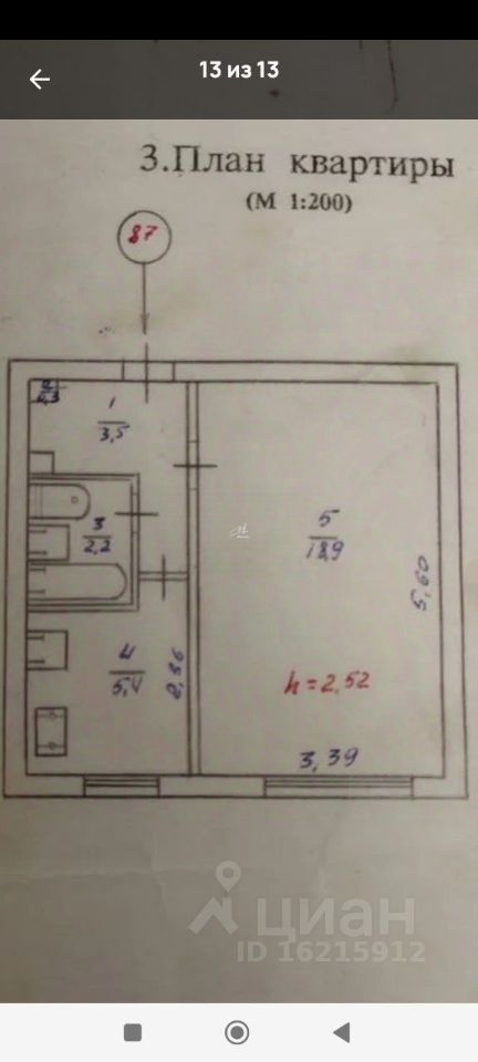 Жилая площадь 18 м² , кухня 5 м²