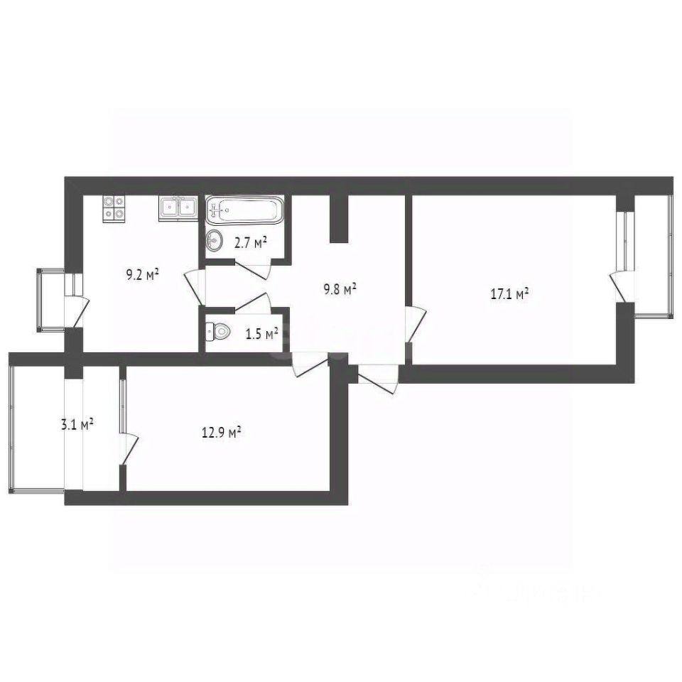 Удобная планировка: две изолированные комнаты, кухня 9 кв.м, раздельный санузел, балкон + большая лоджия (застеклены), большой коридор с раздельными гардеробными.