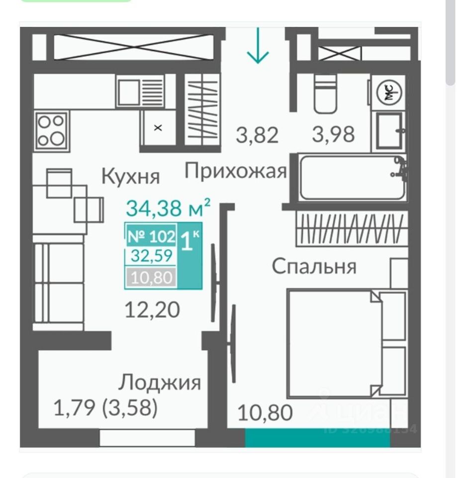 Общая площадь 36.4 кв.м.
