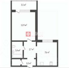 - Общая площадь 28,4 кв. м., жилая 12,9 кв. м, кухня 7,6 кв. м., ванная комната 3,4 кв. м, коридор 1,8/2,7 кв. м., лоджия 3,5 м.