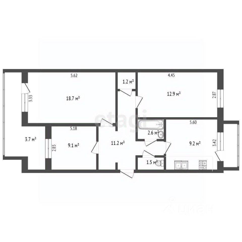 Объект: 3-комнатная квартира на улице Шевченко в быстрорастущем Гагаринском районе с развитой инфраструктурой.