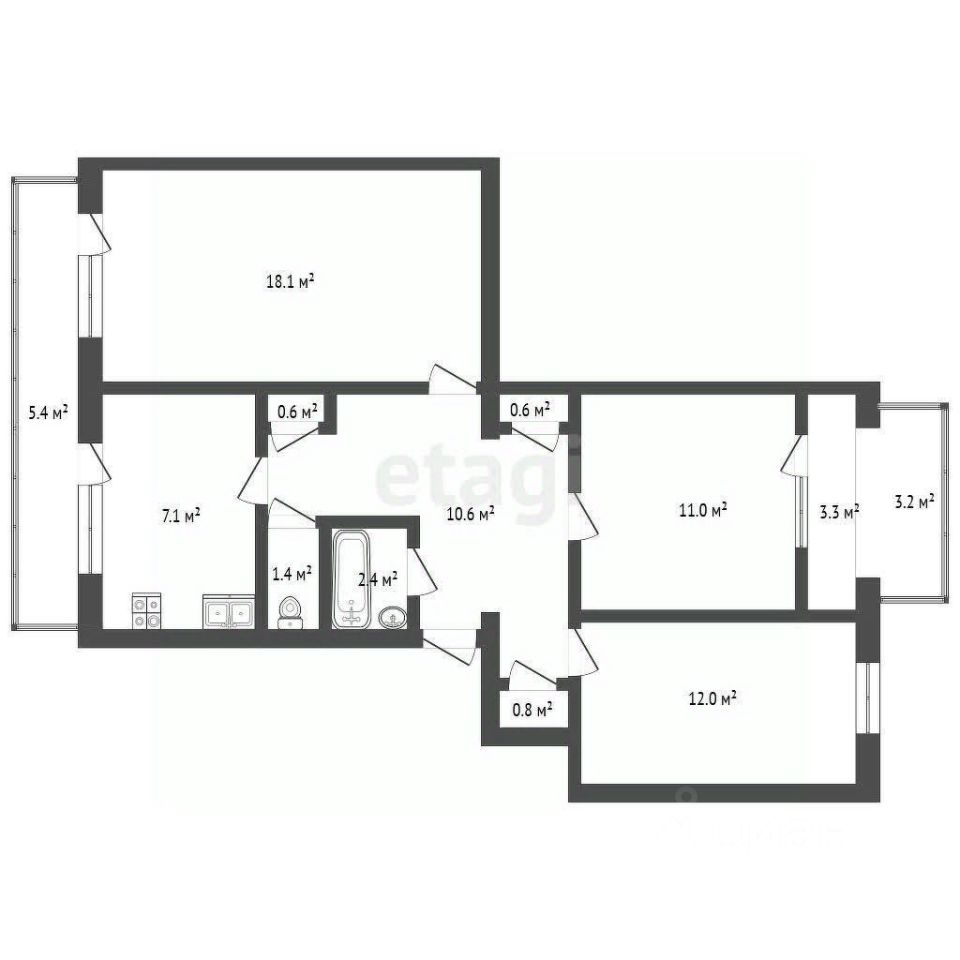 Общая площадь: 68,3 м² (с балконом)