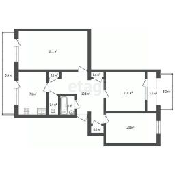Жилая площадь: 41.1 м² (18,1м², 12м², 11м²)