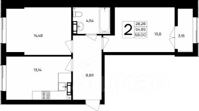 Продается 2-комн. квартира, 58 м²