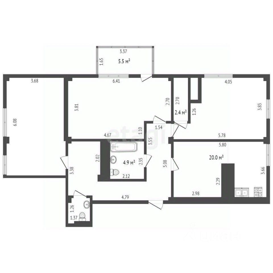Комнаты изолированные - гостинная, спальня, детская - 22,3 / 24,4 / 22,1 м²