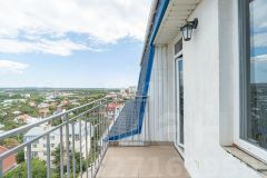 Выход на балкон с гостинной, открывается красивый вид на город и горы.