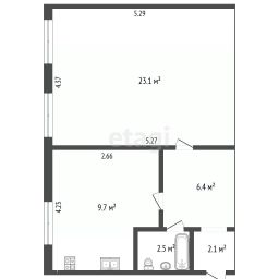 Большая комната площадью 23.1 кв.м.
