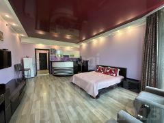 Апартаменты с современным ремонтом, площадью 42.2 м2, расположены на 4 этаже 9 этажного здания. Из окон апартаментов открывается панорамный вид на город.