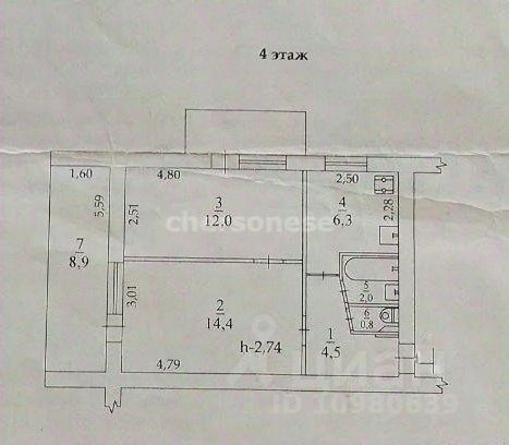 Высота потолков - 2,74