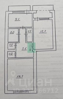 -Комната: 16,7 м2 ; 12,7 м2