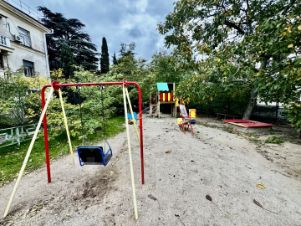 Зеленый ухоженый двор, с детской площадкой.