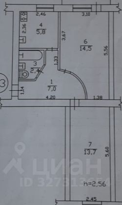 Площадь кухни - 5.8 кв. м.