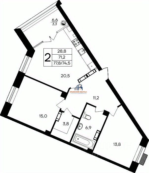 - Комфортные двухкомнатные квартиры от 61 до 78 м²;