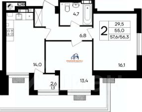 - Комфортные двухкомнатные квартиры от 61 до 78 м²;