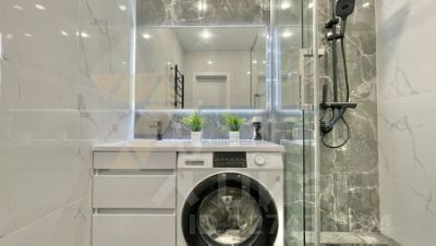 духовой шкаф, плита, микроволновая печь, двухконтурный котёл. В ванной комнате стиральная машина.