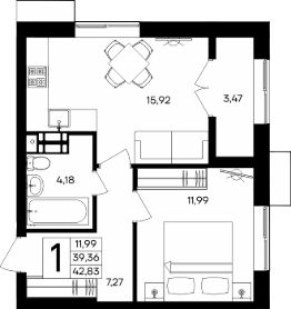 Продаётся 1-комнатная квартира в строящемся доме (Дом 1), срок сдачи: III-кв. 2028, общей площадью 42.83 кв.м., на 2 этаже. "Семисчастье" - город счастья.