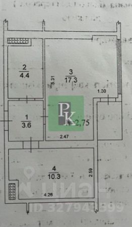 -Жилая площадь: 17,3 м2.