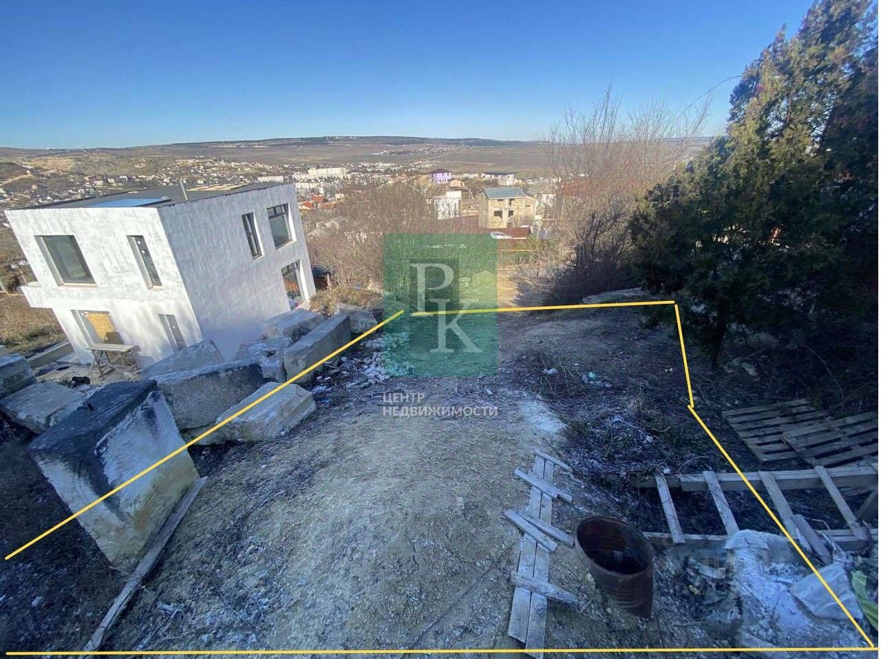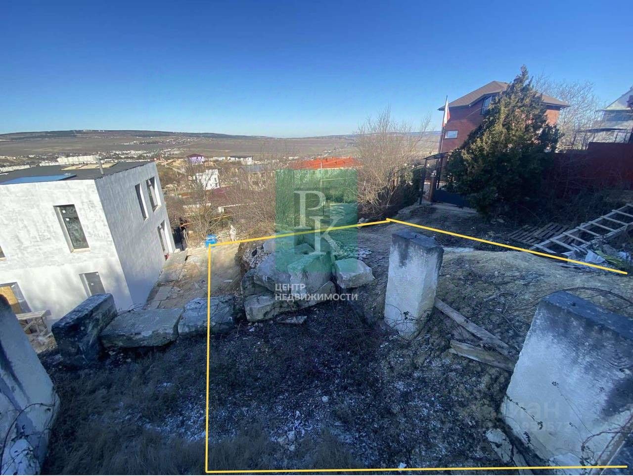 Участок с видом на горы и виноградники.