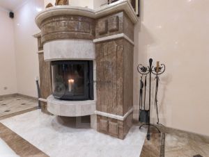 - И конечно же кухня-гостиная с камином на дровах и выходом на шикарную террасу, где приятно встретится с друзьями или же провести деловую встречу.