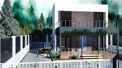 Новый коттедж построенный в 2023 году, идеально подходит для большой семьи с его четырьмя комнатами, двумя санузлами и большой кухней-гостиной. Коттедж может похвастаться высотой потолков 2,9 м, панорамными окнами, большой террасой 21 кв. м. и балконом 21 кв.м.