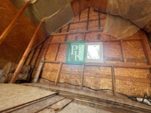 В доме на 1 этаже: спальная и кухня гостиная, на втором этаже мансарда свободной планировки