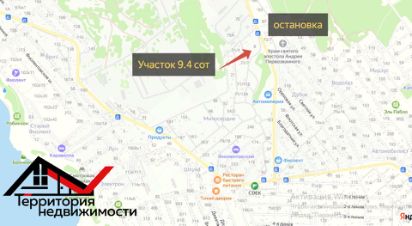Участок общей площадью 9.4 сот находится в развитом районе, недалеко от дороги.