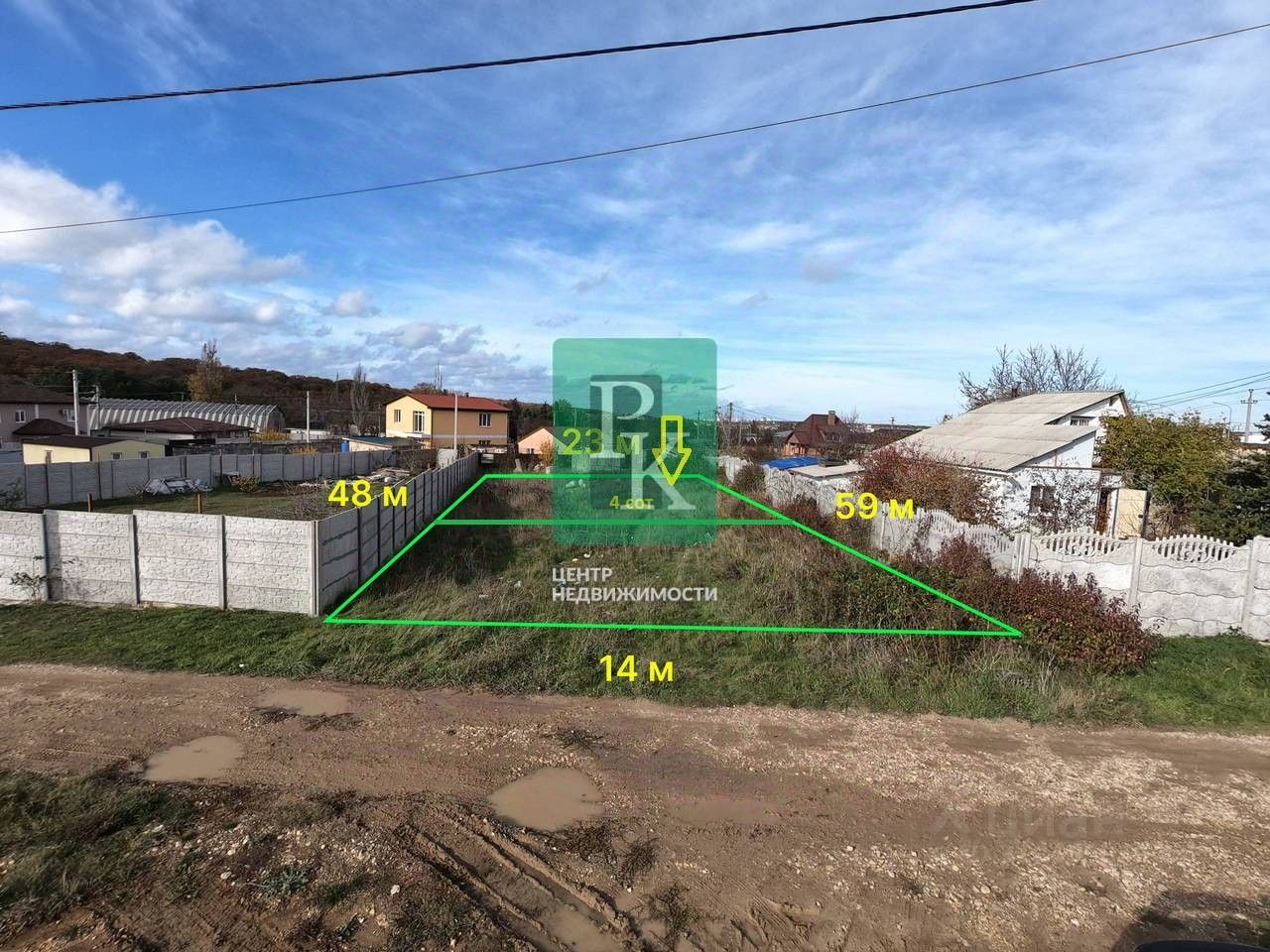 На данны момент весь участок состовляет 9,4 сот. (Можно приобрести целиком, цена за весь - 8750000 руб.) Продаетсяя дальний участок, на фото обозначен стрелкой 4сотки. на нем имеется недострой.