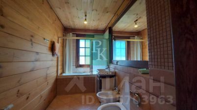 Санузлы оборудованы ванной, унитазом, биде и раковиной на дубовой тумбе. Стены облицованы индийским мрамором.