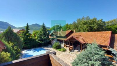 Элитный дом 370 м² с большой террасой 118 м² , с отдельно стоящим гостевым домом 75 м² на участке 25 соток ИЖС, трёхэтажный. Расположен в г. Севастополь, с.Орлиное. Коммуникации: газ, электричество, водоснабжение, отопление, канализация.